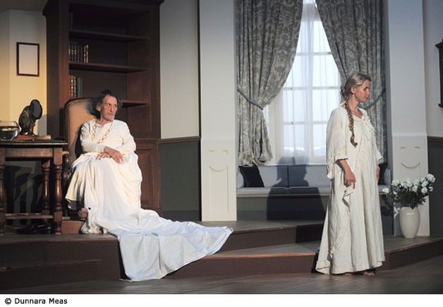 « Mais comment fait Serge Merlin pour rendre vivant jusqu’aux bouts des ongles un personnage qu’on tuerait bien ? Bien sûr, il y a une mise en scène signée André Engel, une scénographie, des costumes, une autre actrice, Ruth Orthmann (...). Mais ce qui aimante le regard et rend ce vieillard tyrannique et misanthrope bien plus vaste qu’une caricature de Daumier, c’est lui, l’acteur, Serge Merlin, un génie sur scène, qui montre une multitude d’êtres et d’états, à travers un personnage qu’on reconnaît mais qu’il ne circonscrit jamais. » Anne Diatkine, Libération, 18 septembre 2015