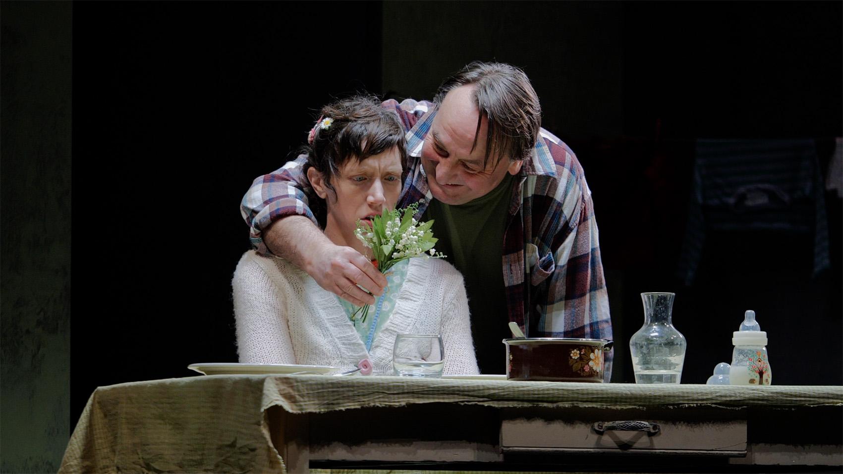 Prix Raimu, Molière de la révélation théâtrale 2007, César de la meilleure actrice dans un second rôle 2018 pour Petit Paysan, figure phare de la série Le Bureau des légendes, Sara Giraudeau devient Ève. Elle s’occupe de la maison, petits plats, linge, ménage impeccable. Elle vit là depuis toujours. Des murs, la porte close, une fenêtre grillagée. Franck la retient, Ève ne connaît pas d’autres repères. Son monde et sa vie sont refermés à cet espace.