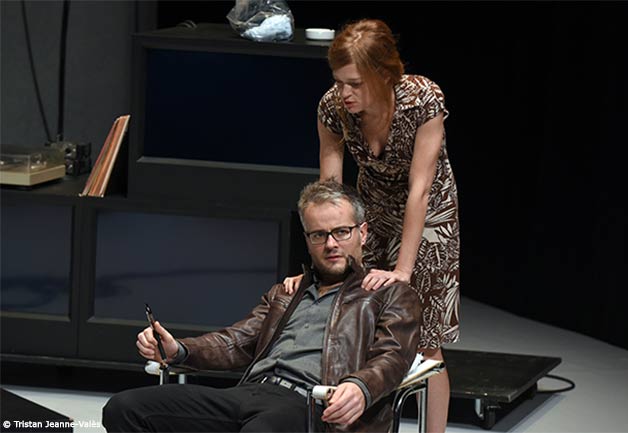 En effet, je ne concevais pas faire parler tout le monde en français alors que la pièce se passe aujourd'hui à Berlin. Pour se comprendre entre eux, les personnages utilisent un gadget développé par Heiner, un système de surtitres qui s'affiche sur des télés. Les surtitres sont intégrés à la fiction et permettent plein de jeux intéressants pour les acteurs et sur la langue. Les télés, qui évoquent les années 80, avant la chute du Mur donc, tout comme la musique de Kraftwerk d'ailleurs, sont aussi des éléments importants de la scénographie, ils structurent l'espace scénique. On évoque à travers eux aussi le début de l'informatique.