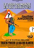 Ce concert d’une quinzaine de chansons est intitulé Le tour du monde en 80 minutes en référence à l’une des chansons de Gauthier Jurgensen. Il interprète également des reprises de quelques-uns de ses groupes fétiches, tels que Blur, la Mano Negra et Radiohead. Le thème récurrent de ce spectacle est la liberté, telle une invitation à s’évader de la réalité sans jamais ne rien concrétiser… Les titres interprétés par Gauthier Jurgensen se caractérisent par des paroles sobres et justes mais amenant avant tout à la réflexion.