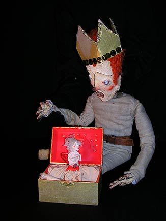 Le désir de sobriété, s’est imposé du fait qu’il s’agit d’emblée d’un royaume qui ne respire pas la joie de vivre puisque son roi est avare… et ne veut rien partager ni donner et donc il en a découlé ainsi une simplicité à la fois dans le décor et dans les costumes des marionnettes. Ce qui souligne d’autant plus l’envie de vivre des personnages et leur énergie vitale. Sous cette apparence très pauvre se dessine très nettement la rage de profiter des plaisirs de la vie.