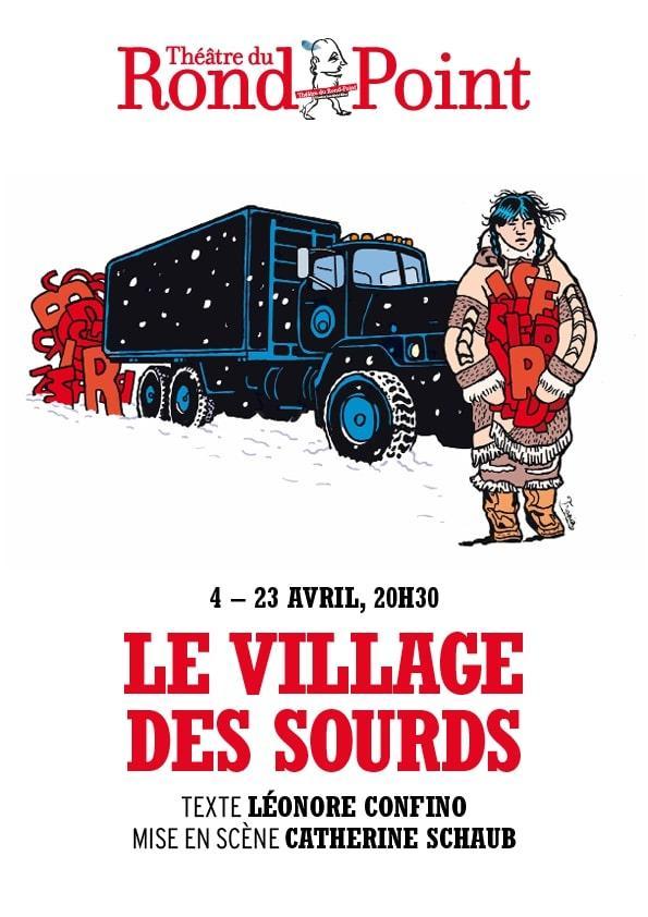 Après Pompiers, de Jean-Benoît Patricot, au Rond-Point, Catherine Schaub dirige la fable humaniste de Léonore Confino, conte poétique et cruel, boréal et truculent, sur l’appauvrissement du langage. Le Village des sourds donne à voir l’organisation puis la dégradation d’une société en montrant qu’en se séparant de leurs mots, les hommes se désarment eux-mêmes.