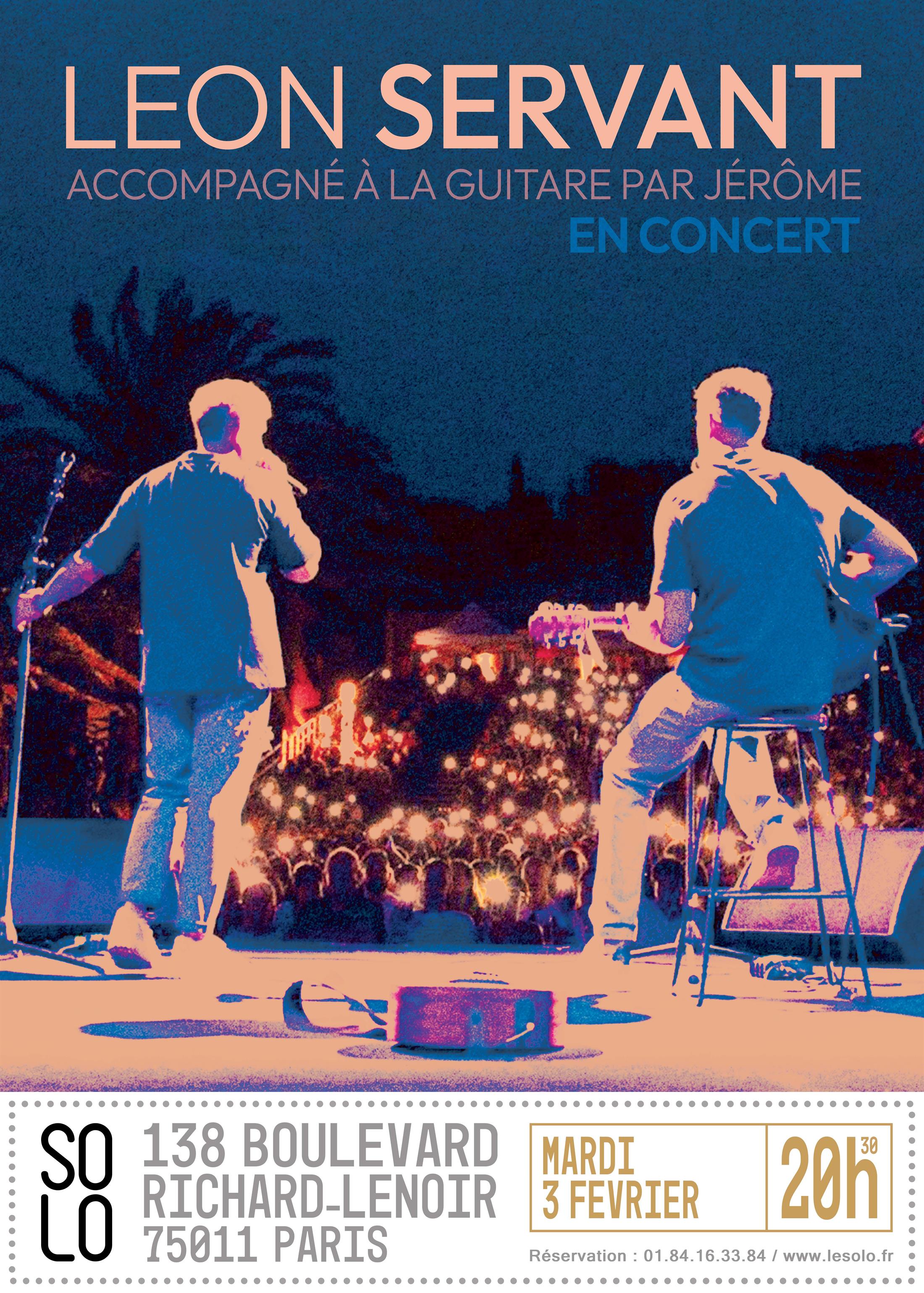 Léon Servant en concert, accompagné à la guitare par Jérôme.