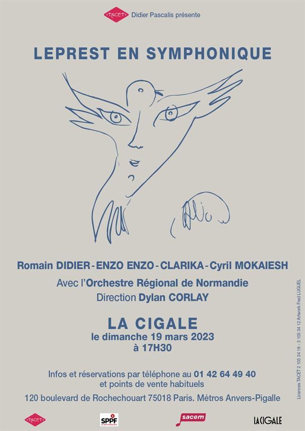 Ce concert est un vibrant hommage à l’auteur-interprète, mort prématurément, Allain Leprest. Chanteur « torturé » et « pudique », que l’on a pu qualifier de rimbaldien au regard de la puissance poétique de ses textes « beaux à pleurer », il a été révéré par ses pairs de Ferrat à Nougaro, lequel voyait en lui « l’un des plus foudroyants auteurs de chansons au ciel de la langue française ». Avec la sensibilité qui leur est propre, quatre magnifiques interprètes se glissent dans l’univers de Leprest, pour faire entendre une vingtaine de ses chansons. Outre Romain Didier, son complice de toujours, compositeur d’une douzaine des mélodies retenues pour ce concert, Clarika, Cyril Mokaiesh et Enzo Enzo montent sur scène accompagnés par les musiciens de l’Orchestre Régional de Normandie placés sous la direction de Dylan Corlay.