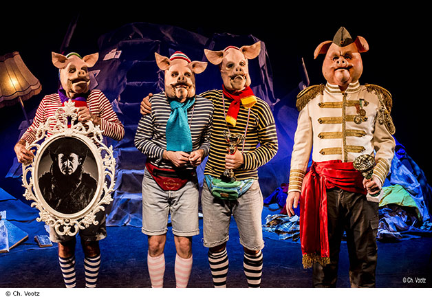 Jean-Thierry, Jean-Michel et Jean-René, trois frères Cochons en âge de quitter le foyer familial, partent découvrir le monde. Chacun décide de gérer cette nouvelle liberté comme il le souhaite, jusqu’à l’arrivée du Loup qui va leur causer bien des soucis. Mais ce Loup est-il vraiment le méchant de l’histoire ? Dès 5 ans.