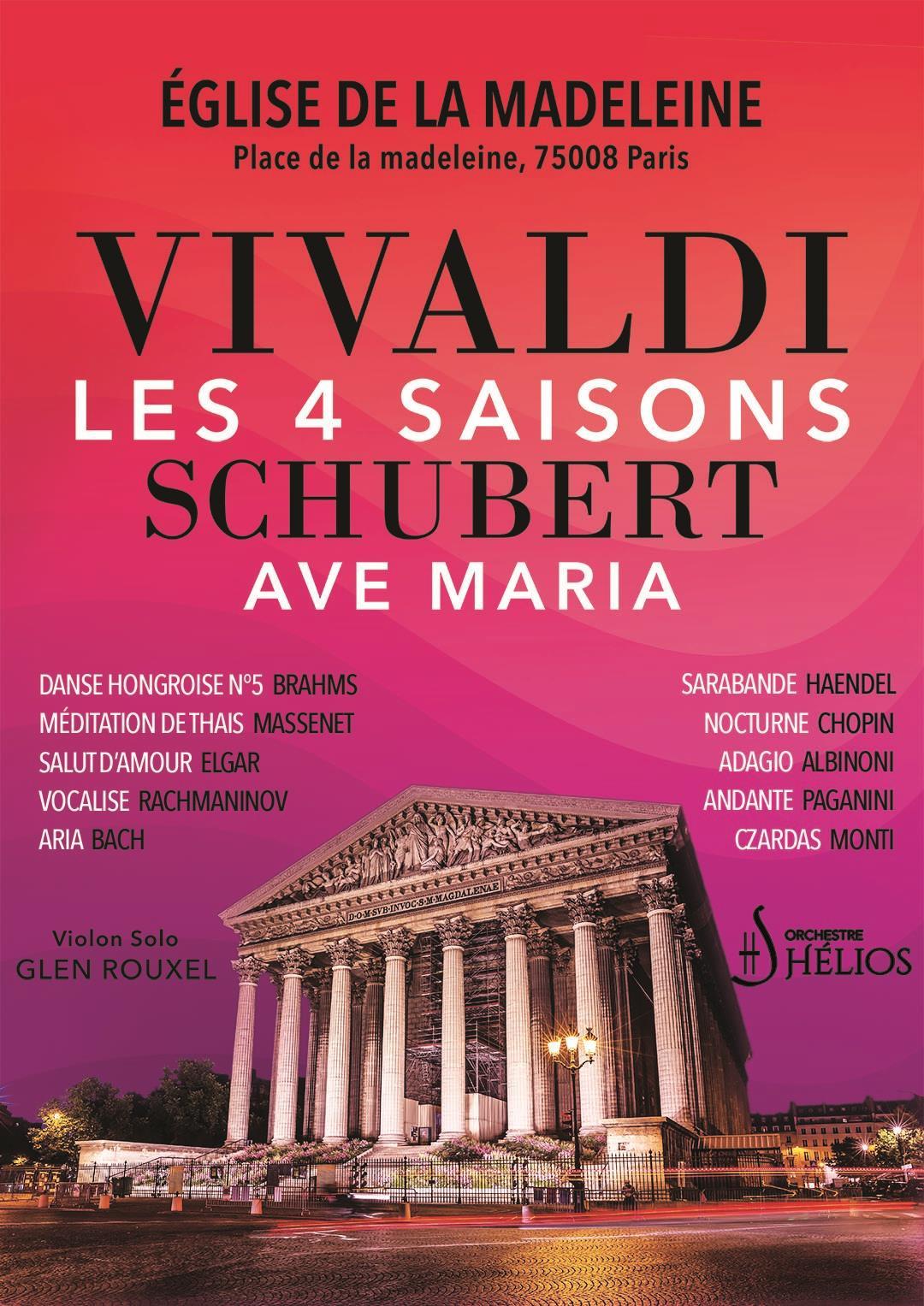 Portées par le Quatuor à cordes Hélios et le violoniste Glen Rouxel, ces 4 saisons vous attendent dans le cadre magnifique de l'Eglise de Saint-Germain des Prés.