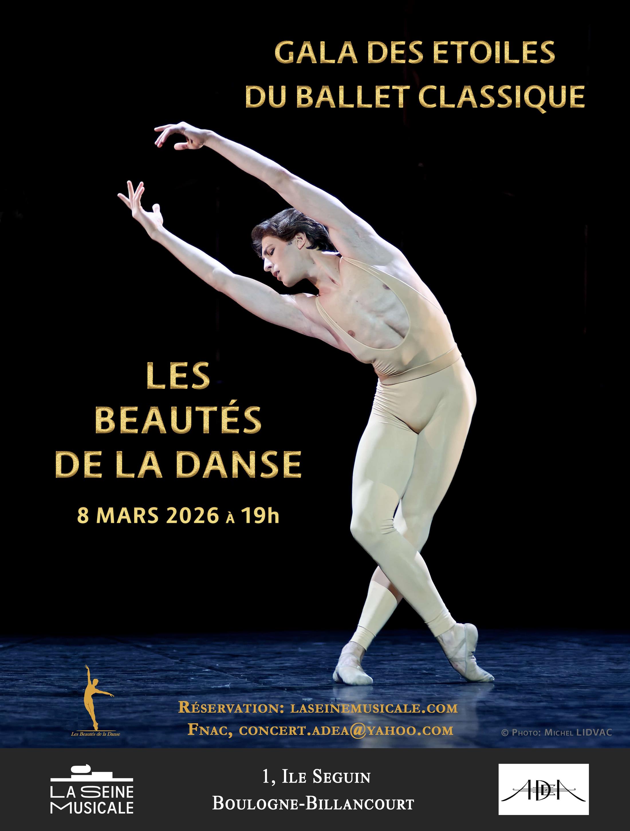 Après une soirée spéciale – un hommage aux ballets du XIXe siècle le 30 janvier - Les Beautés de la danse vous propose le 8 mars sa 6e édition qui réunira à nouveau des artistes d'exception : Mathieu Ganio et Paul Marque (étoiles de l'Opéra de Paris), Alina Cojocaru (étoile internationale), Olga Smirnova et Jacopo Tissi (étoiles du Dutch National Ballet d'Amsterdam), Mayara Magri et Matthew Ball (Royal Ballet de Londres), Esteban Berlanga (étoile du Zurich Ballett) ainsi que d’autres étoiles et solistes de grandes maisons de danse européennes...