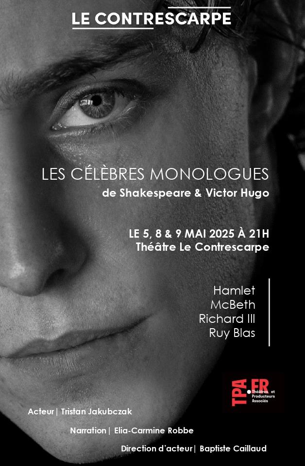 Dans ce seul en scène vibrant, les monologues les plus puissants de Shakespeare et Victor Hugo prennent vie. Ils s’enchaînent dans un ballet de passions, de doutes et de fureurs.