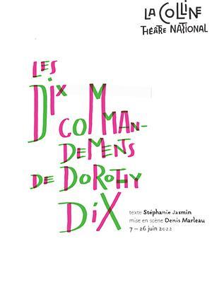 Les Dix Commandements pour être heureuse de Dorothy Dix, qui ont été en quelque sorte le guide de vie de cette femme, structurent le texte et m’ont donné la note pour chacune de ses parties, telle une réminiscence inconsciente devenant le point de départ d’une révolte sourde ou d’un désir inconscient de libérer quelque chose, dans une lucidité inattendue.