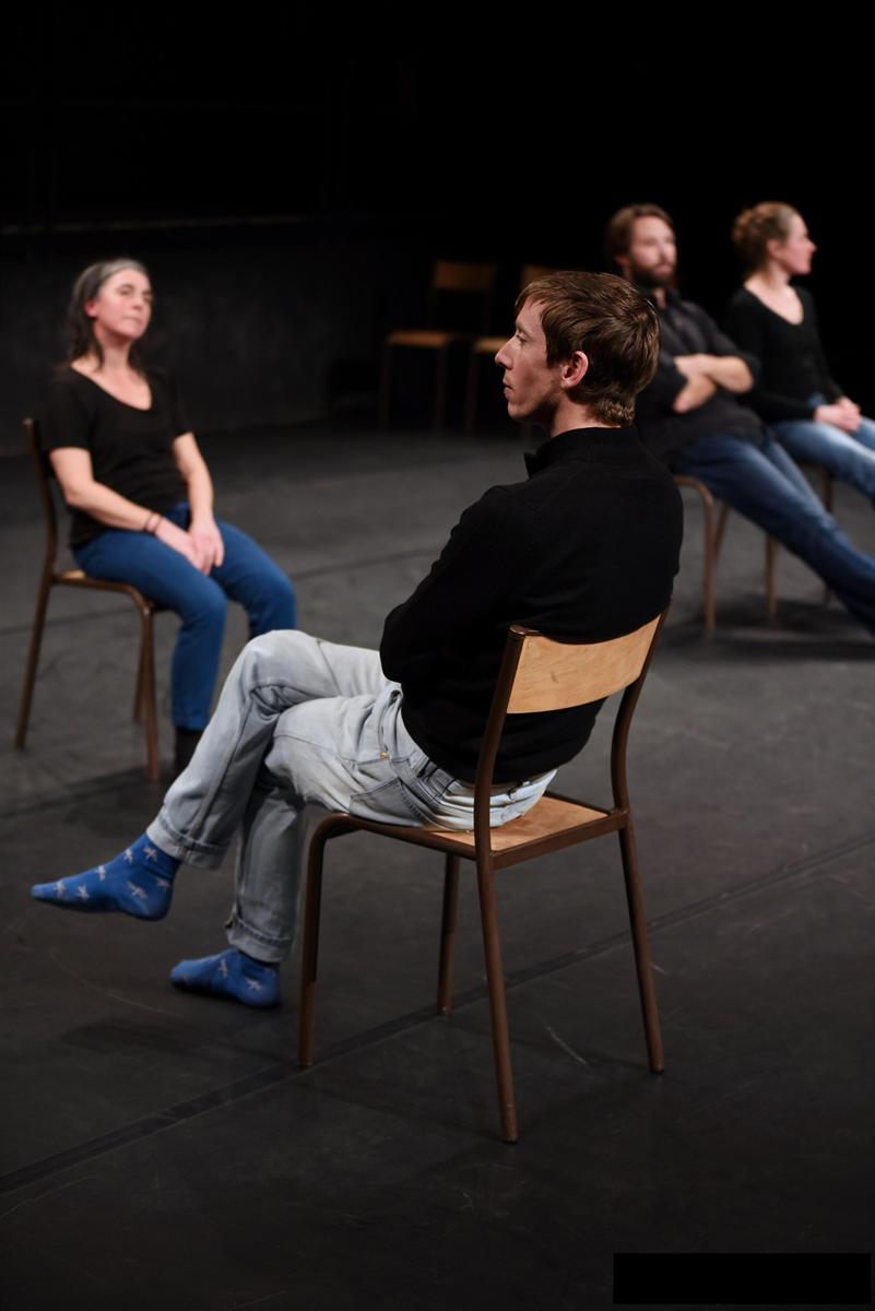 Ces quatre jeunes comédiens sont des artistes pluridisciplinaires. Ils interprètent avec talent et vivacité les bavardages souvent creux et insipides qui rythment nos vies "courantes" (après le temps, après le sens et la valeur de l'existence). Le décor minimaliste et épuré met en lumière la qualité de leurs prestations.