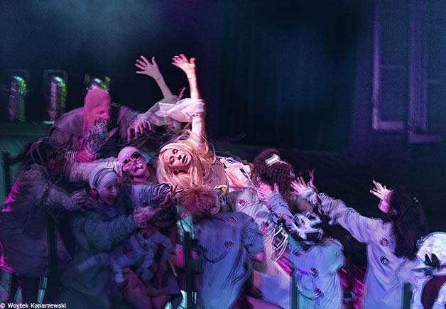Exégèse de l’œuvre et de l’esprit de Stanislaw Ignacy Witkiewicz (1885-1939), considéré comme l’un des pionniers de la modernité artistique en Pologne, cette création originale explore les racines de la folie. Elizabeth Czerczuk y met en scène de nombreuses créatures enchevêtrées dans leurs enfermements et les dictats sociaux, qui démultiplient la névrose du Fou et la Nonne de St. I. Witkiewicz. C’est toutefois une autre histoire qu’elles racontent. Davantage centrée sur l’actualité.
