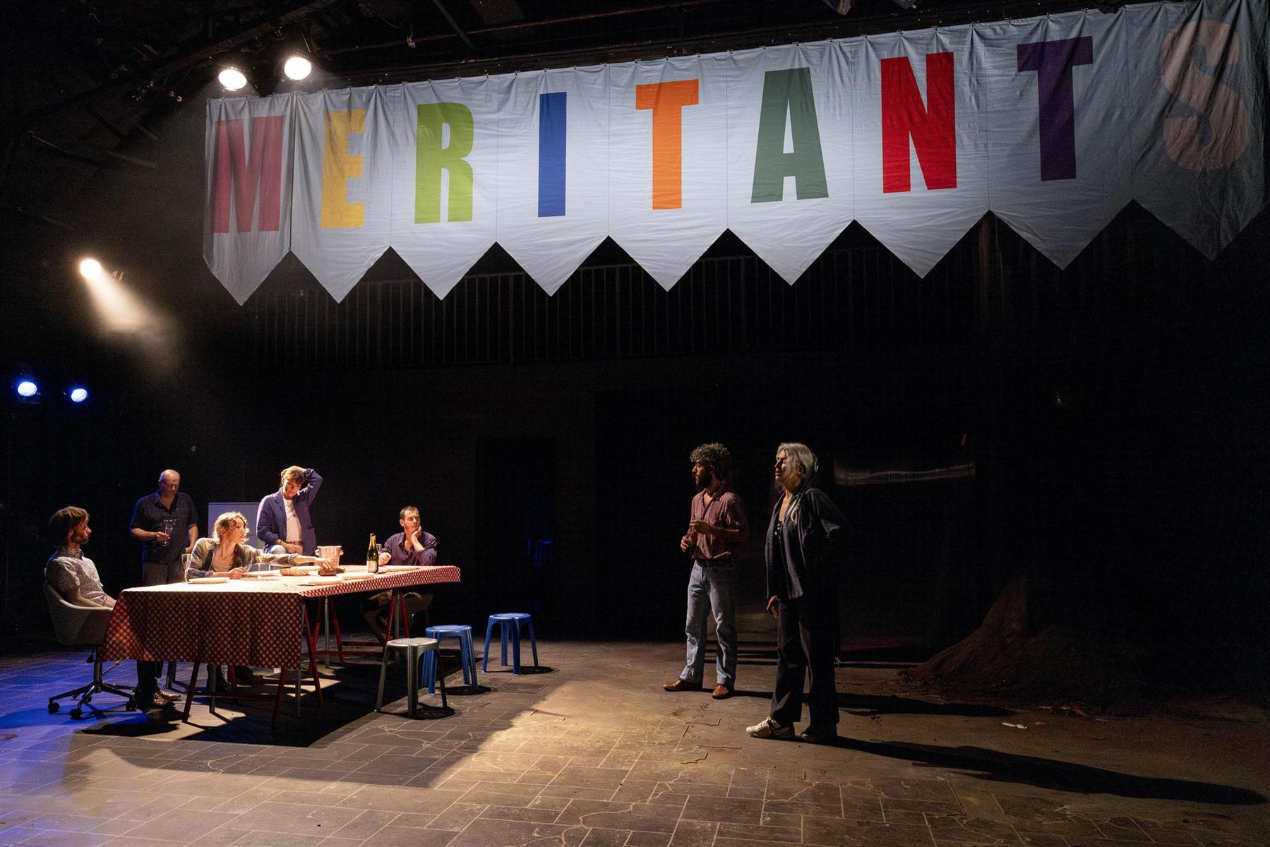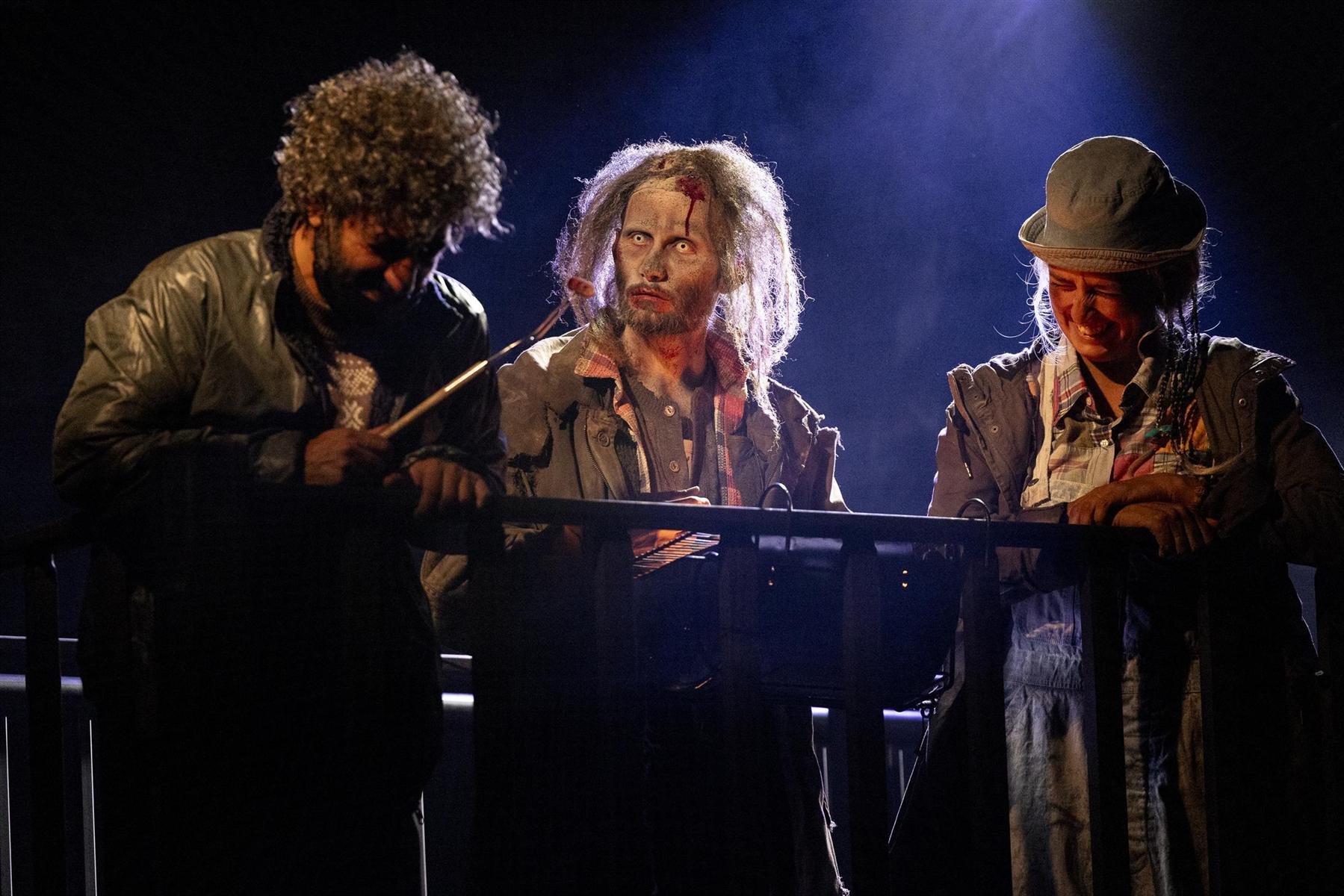Julien Guyomard – qui signe le texte et la mise en scène de cette comédie allégorique satirique – a choisi de s’intéresser aux rouages de la méritocratie. Forcés à cohabiter, humains et zombies se cognent aux murs de cette société à deux vitesses. Jusqu’au jour où le zombie Clairvius parvient à passer de l’autre côté, à intégrer le comité central dirigé par les humains. Mais si un zombie réussit, gagnant ses galons de cadre sup’, qu’est-ce qui empêche les autres d’y arriver ? Les zombies méritants sont-ils les bienvenus ? Ou l’ascenseur social serait-il légèrement enrayé ?