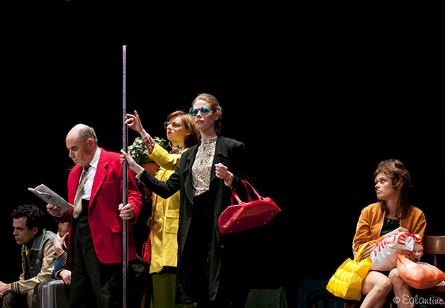 En effet, la création a consisté à proposer des situations quotidiennes aux acteurs, à fixer un cadre, puis à laisser libre court à l’improvisation à l’intérieur de celui-ci. Les scènes se sont tissées ainsi. J’ai choisi des comédiens issus de formations différentes (clown, conservatoires, pantomimes), avec des endroits de jeux singuliers, pour qu’un frottement opère à l’intérieur de cette rame de métro et donne naissance aux rencontres improbables et impertinentes.