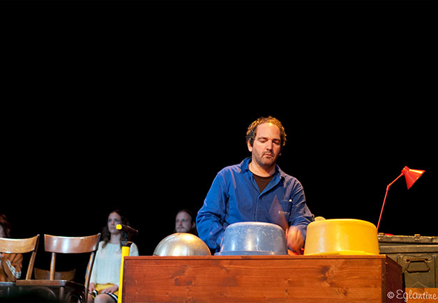Le métro est un lieu de tous les possibles. Ce transport est l’espace parfait pour observer, le temps d’un trajet les autres, et se mettre à rêver, imaginer ce qu’ils peuvent être, faire dans la vie ou devenir... Le métro est aussi un endroit bruyant avec ses sonneries, ses grincements, ses accélérations, et ses freinages. J’ai choisi de développer cet univers sonore et de l’intégrer pleinement au spectacle par la présence d’un musicien percussionniste, Nicolas Fenouillat. Avec ses instruments de fortunes, il scande en cadence les annonces des stations et conduit le métro. Les Métronautes repose sur une structure musicale forte qui transcende et uni le jeu des comédiens. Si le métro est une partition, les personnages en sont les notes qui entrent et sortent, se mélangent et font corps forment des accords ou même des désaccords, des rencontres heureuses ou malchanceuses et tracent des trajectoires, une mélodie.