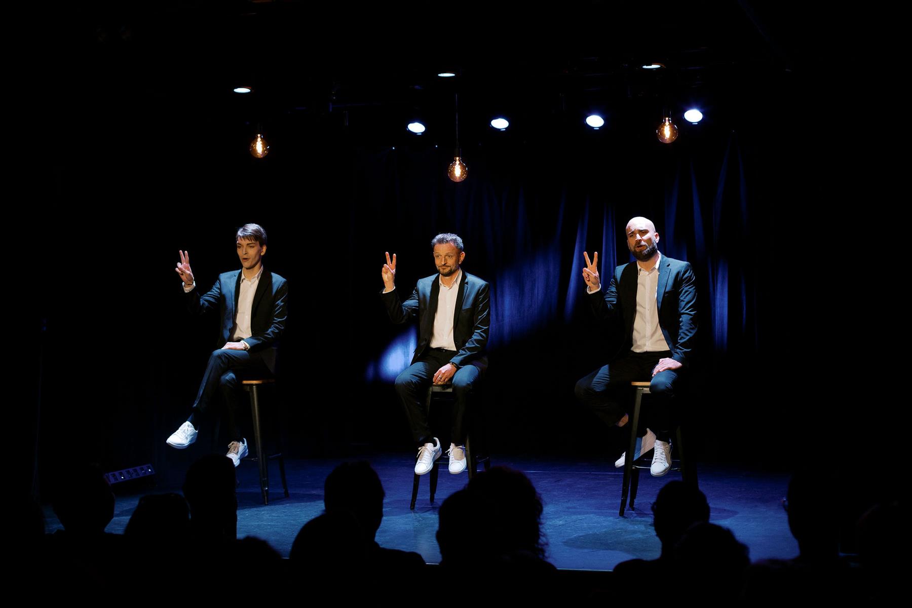 Les trois comédiens sympathiques, souriants et gouailleurs au possible, nous présentent le ... "fondement de la virilité". C'est amusant et dynamique et on y apprend différentes choses sur les différentes manières de nommer "le machin", l'origine des mots et certaines informations plus sérieuses... Spectacle ludique et ironique.