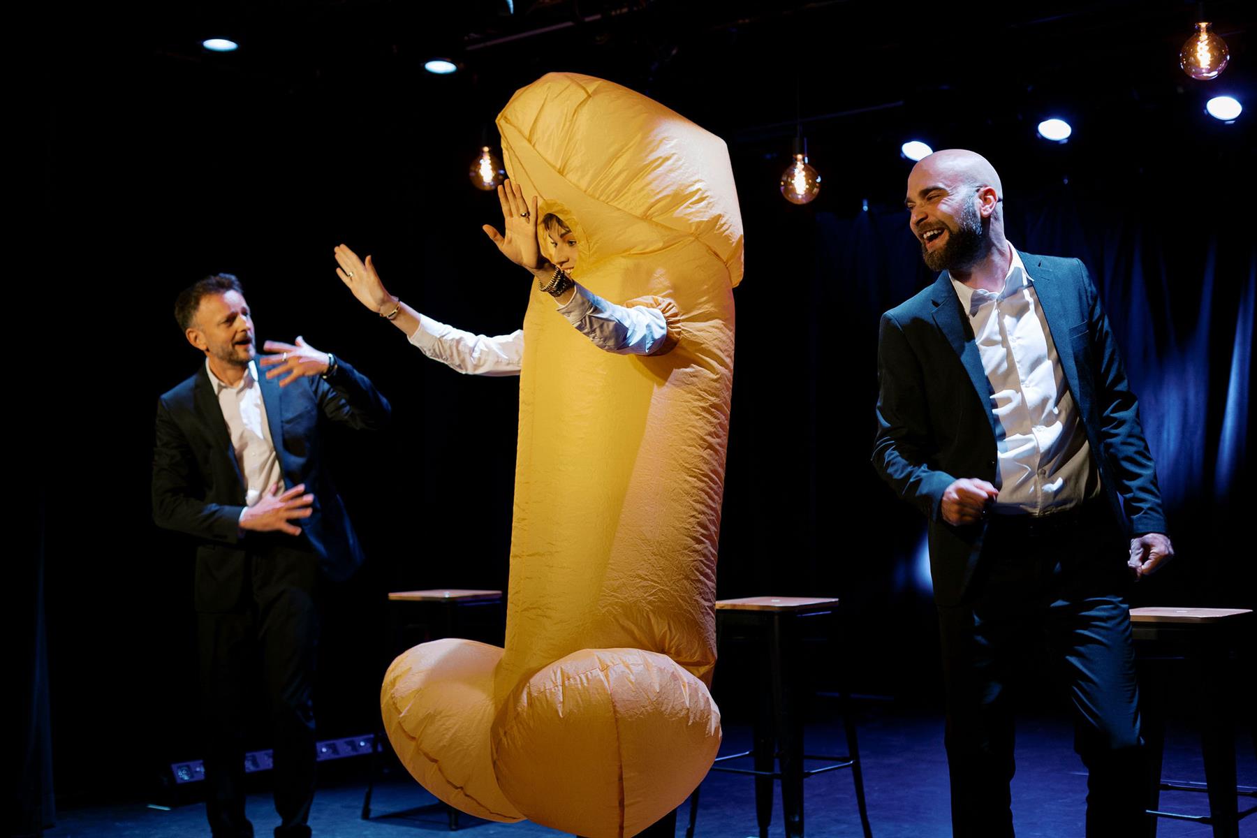 Une heure trente de rire et d’introspection où trois comédiens émouvants vous parlent du machin, cette chose approximative qui pendouille entre leurs jambes et qu’on ne nomme pas ou mal. Une comédie ludicomique qui s’adresse à toute personne en âge de se questionner sur le sexe de l’homme, véritable obsession et sujet de société permanent s’il en est. Ce spectacle, qui pourrait s’apparenter à une conférence sur le pénis tant il est précis et documenté, est un fin mélange entre humour, légèreté et profondeur.