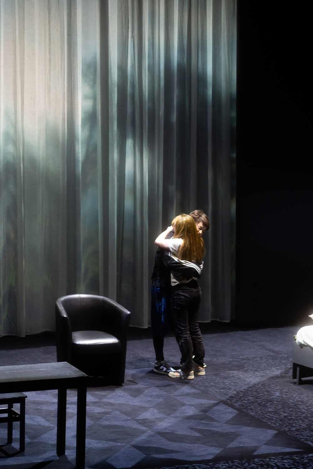 Pour cette nouvelle incursion au cœur de l’adolescence et de ses tumultes, Pommerat imagine un « théâtre roman », où les événements se racontent en même temps qu’ils se vivent. Dans son univers en clair-obscur, les peurs et les cauchemars se déploient dans des espaces noirs et quasi-vides, à la lueur de vidéos hypnotiques. Une « déambulation dans la construction de soi » envoûtante et sans leçon de morale.