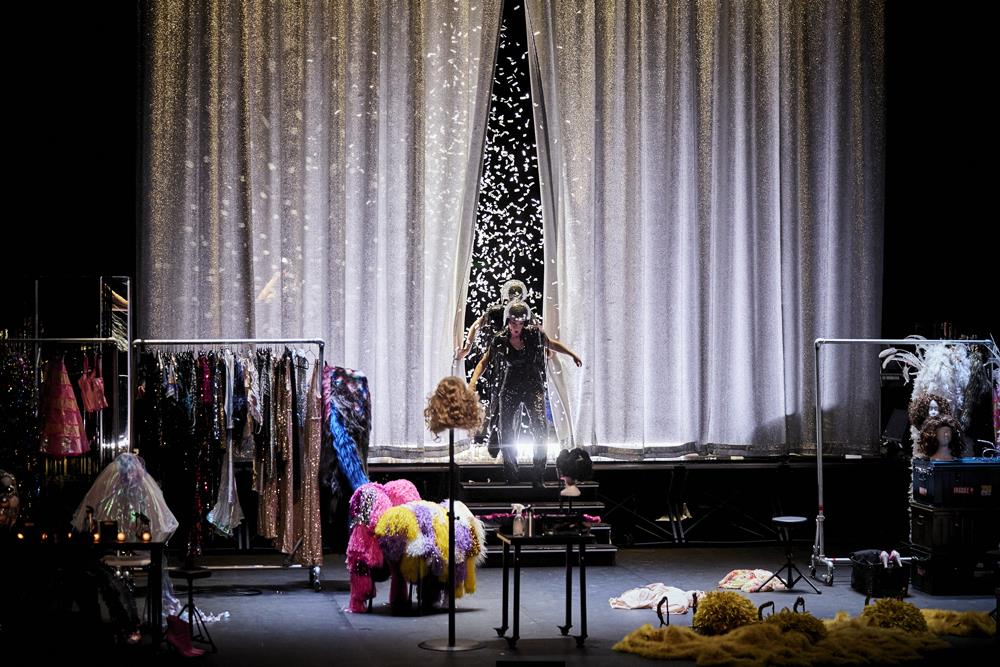 Pour ce nouveau spectacle, nous confions les rênes à Pierre Guillois, heureuses de rejoindre sa folie et son art de raconter des histoires avec des corps libérés des contraintes sociales. C’est ce qu’il nous faut Le théâtre et le Music-Hall qui s’entrelacent et se narguent. On veut tout montrer : le glamour, l’artiste en représentation et aussi le travail, le stress, le bancal, le pas glamour, les ratages, la dérision. Dévoiler ce qu’il se passe derrière, en coulisses, avant et après avoir été exposées sur scène, face au public. On montrera le show et on dévoilera les coulisses. Sur la scène-coulisses, ça sera un sacré bordel : des plumes, des talons, des collants, des tables jonchées de maquillage et de bric-à-brac. De la musique à fond avec trois musiciens multi-instrumentistes, des chansons inédites écrites sur mesure par Prunella Rivière, orchestrées par Fred Pallem.