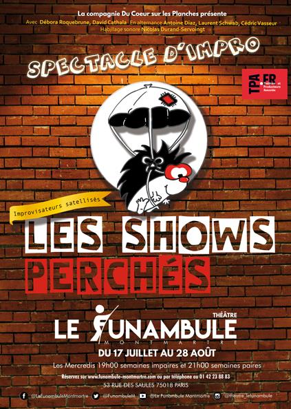 Les intrépides comédiens des Shows Perchés avec leur fantaisie et leur imagination débordante, créent des histoires et des personnages passionnants sans script ni préparation préalable.
