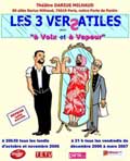 Si la chanson vous paraît décidément trop hétéro-normée, et si vous rêvez d'entendre des refrains bien plus hétéro....clites, et bien le spectacle A voix et à Vapeur des Versatiles est fait pour vous. Ces trois garçons, qui se sont épanouis dans la troupe des Caramels fous et qui ont décidé de tenter seuls l’aventure, détournent délibérément quelques grands classiques de la chanson pour (enfin !) les teinter de rose. Humour, tendresse et bébé phoque !