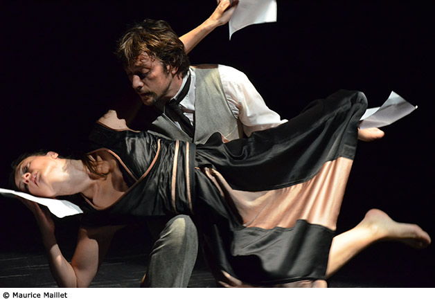Un duo amoureux évolue sur scène, sans parole. Dans un univers surréaliste, il nous parle d’un rapport de couple sclérosé par le mutisme et la non-communication. La souffrance, elle, est bien présente, dense, presque palpable. Elle envahit l’espace et le rend sensible, vibrant au moindre mouvement des deux personnages. Mais ici et là un geste tendre, un souvenir enfoui, un rayon de soleil qui entre par effraction dans cette relation claustrophobe.
