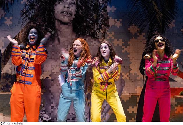 Avec ses cinq comédiennes grimées en Beatles de pacotille, Céline Champinot revient pour la troisième fois au Théâtre de la Bastille pour faire s’entrechoquer carnaval pop et récits fondateurs.