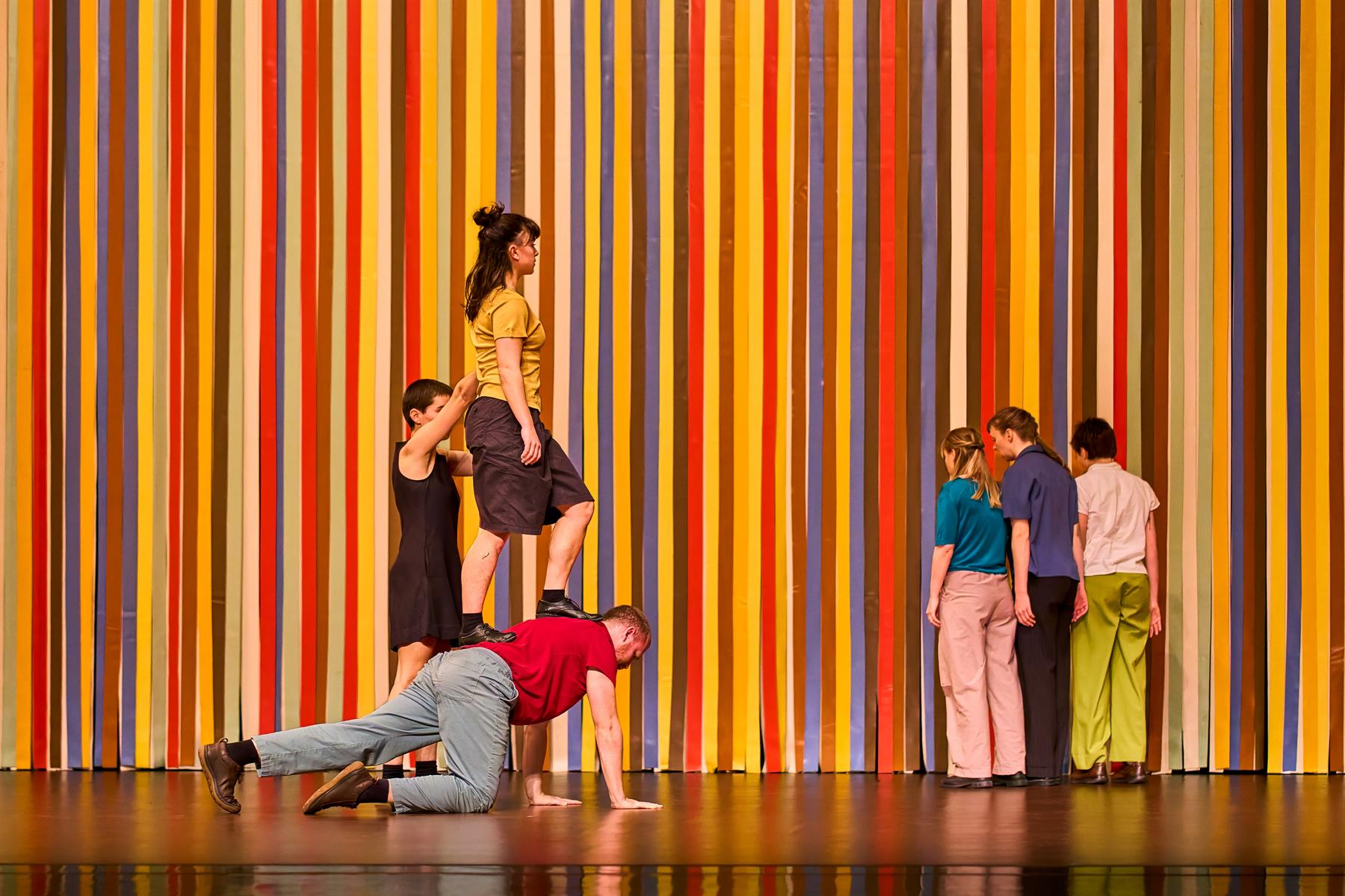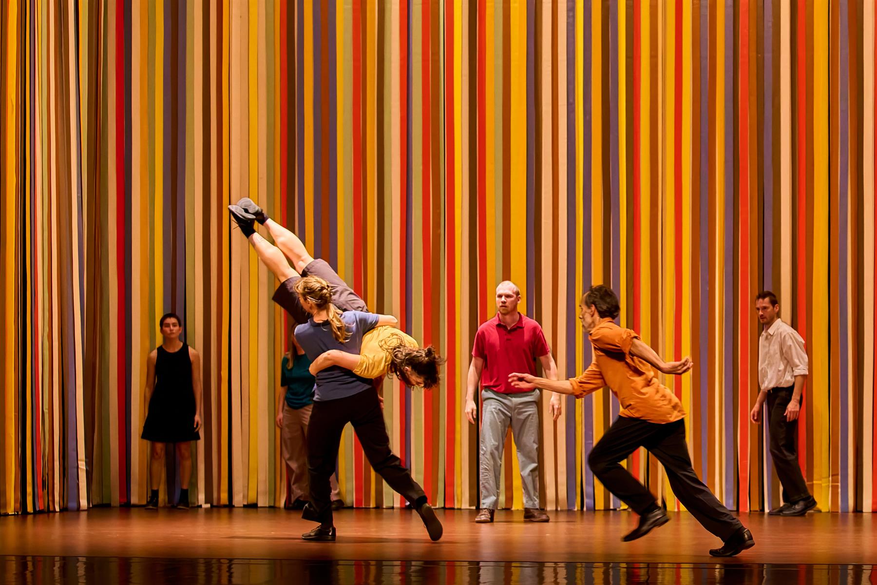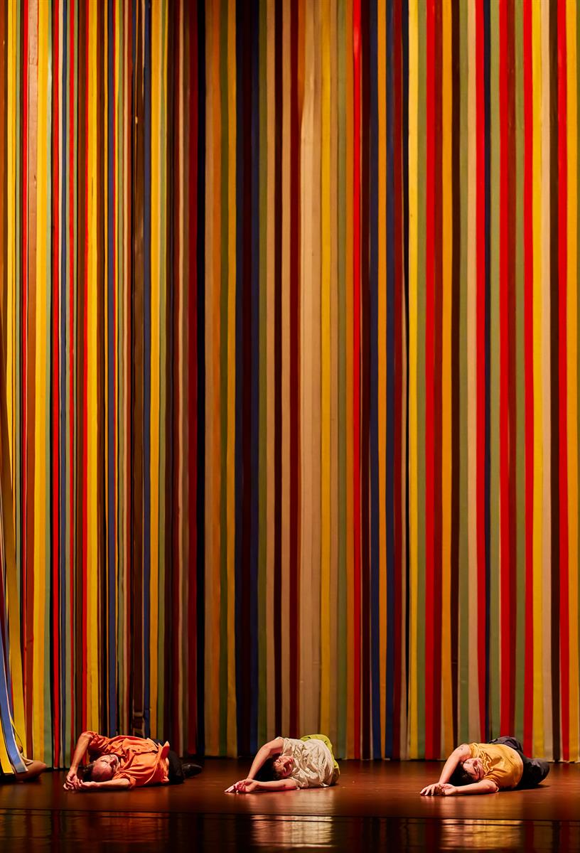 Créée en 2002 pour la Biennale de la danse de Lyon, Maguy Marin pensait alors aux pays d’Amérique du Sud, tout juste sortis de dictatures sanglantes mais laissant peu d’espoir aux plus démunis. Aujourd’hui, la pièce, sous tension, ressemble presque à un constat de notre société où « la réussite de quelques-uns fait face à l’impuissance de plusieurs milliards d’autres », et l’actualité des crimes, des guerres, des jeux de pouvoir iniques, et des répressions sont plus que jamais notre affaire. La pièce est implacable. Apparitions, disparitions, arrêt, chutes, et corps que l’on tire derrière un joli rideau de plastique aux couleurs chaudes. La violence est partout, l’oxygène nulle part. Ce huis clos à huit personnages qui se regardent et se jaugent, s’évitent ou se toisent, se croisent ou se bousculent, suffit à dire la révolte ou la soumission inscrites dans les corps. Victime ou bourreau, on ne sait plus. Le rapport de force est palpable à chaque minute, la résistance indispensable. Et « malgré les bons points distribués aux bons élèves par la finance internationale épuisant les luttes et ruinant les populations, les applaudissements ne se mangent pas ».