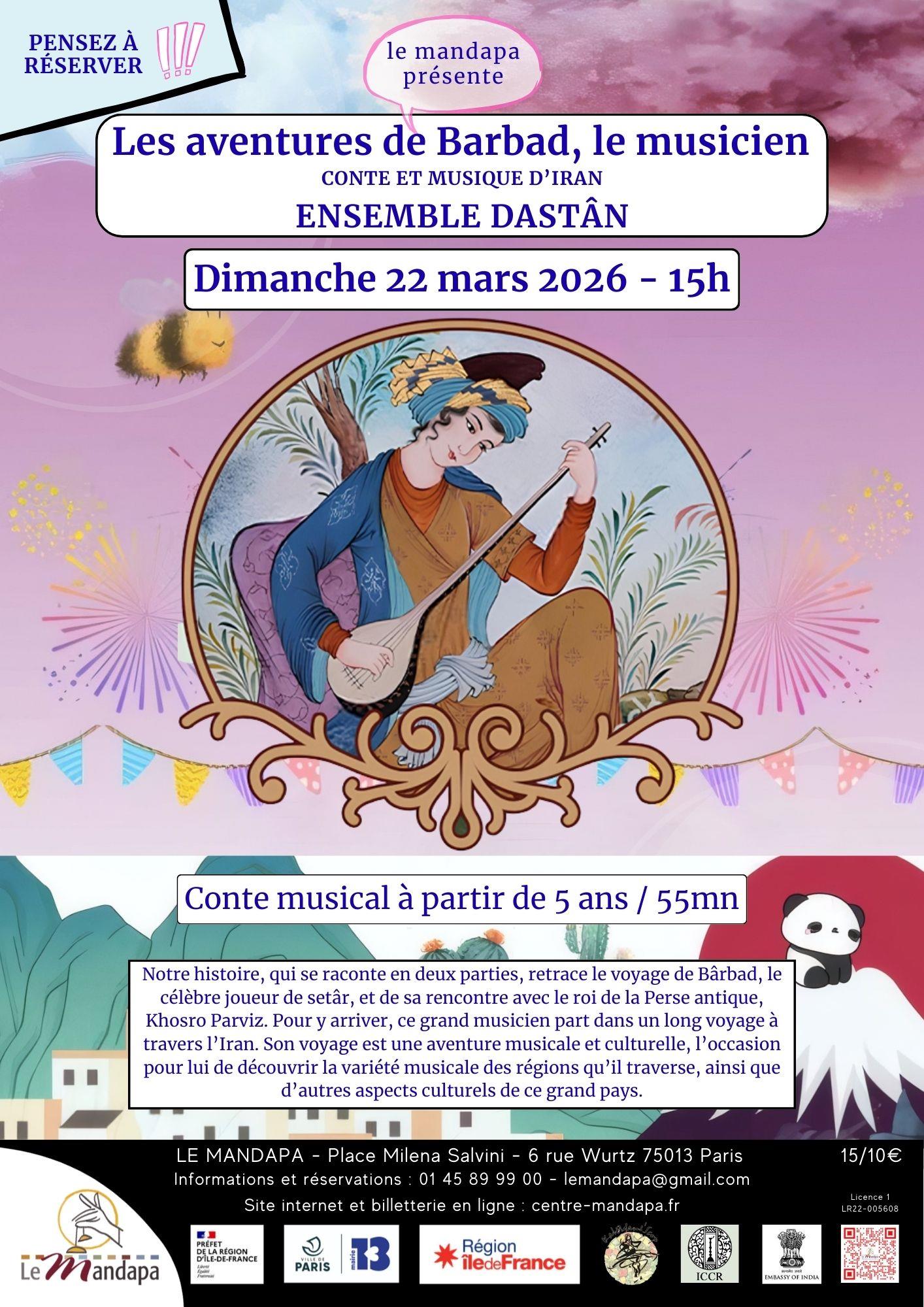 Notre histoire, qui se raconte en deux parties, retrace le voyage de Bârbad, le célèbre joueur de setâr, et de sa rencontre avec le roi de la Perse antique, Khosro Parviz. À partir de 5 ans.