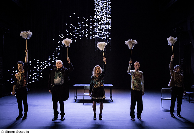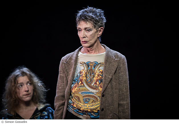 Il faut au moins ça : organiser un repas avec maître d’hôtel très stylé et chanteuse debout sur la table, pour rire de la fin de Lear, grand amour, grand ami, mort fou. Mais à cet étrange repas le défunt se bâfre avec les autres. Il participe avec délectation au récit de ses derniers instants, extinction des feux avec perte des repères et des liquides corporels. Et ça le fait rire, son corps qui lâche, les trente et un kilos, la débâcle organique. Et Pylade, l’ami, l’engueule de ne plus dire que des bêtises, et Pénélope, l’épouse, fait semblant de tenir bon en choisissant la taille du cercueil... Ça le fait bien rire aussi. L’humour ne conjure pas le sort, il le provoque. La poésie crue met à distance la tragédie de l’inévitable et la décrépitude qui va avec.