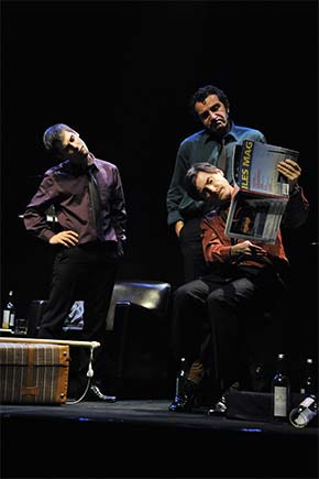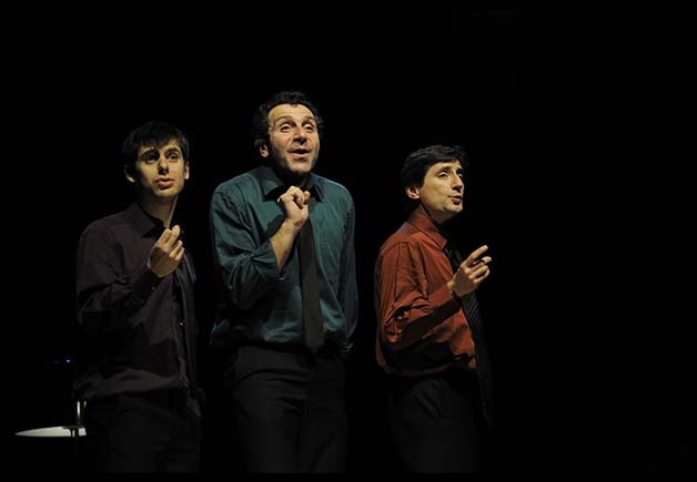J’ai sélectionné une petite dizaine de sketches et j’ai demandé aux auteurs l’autorisation d’en faire une adaptation. Loin de moi l’idée de vouloir toucher à leur prose, mais juste de redistribuer les répliques. De passer ainsi de deux à trois personnages, sans altérer le sens et l’efficacité comique des textes. Bien sûr, la question qui vous vient est : “Mais pourquoi donc ce troisième personnage ?” Eh bien, parce que, depuis un petit bout de temps, j’avais très envie de réunir trois artistes avec qui j’avais eu grand plaisir à travailler. Trois artistes qui ont la particularité d’être aussi bien d’excellents comédiens que de formidables musiciens et chanteurs.