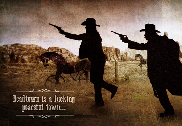 Sur fond de projections vidéo et avec dix-huit acteurs, musiciens, danseurs et chanteurs et des marionnettes géantes, Deadtown marie les décors de théâtre, le monde magique des vieux films muets et des photographies colorées pour recréer l’illusion de cet Eldorado que représente le mythique Ouest américain. Dans une baraque en bois spécialement conçue pour l’occasion, les Frères Forman ont choisi de construire leur récit sur une mise en abyme, rejouant leurs propres personnages : après une dispute avec son frère, Matej part en Amérique. « C’est comme dans un film ! », écrit-il à Petr, qui part le rejoindre. Et voilà que l’histoire se déroule sous la forme d’un flash-back. Un flash-back grandeur nature, un saut dans le temps et dans l’espace, mais surtout dans l’imaginaire des vieux westerns de notre enfance. Ambiance vieux saloon avec piano, charognards, cowboys, prostituées, voleurs de chevaux et coups de feu… Bienvenue à Deadtown !