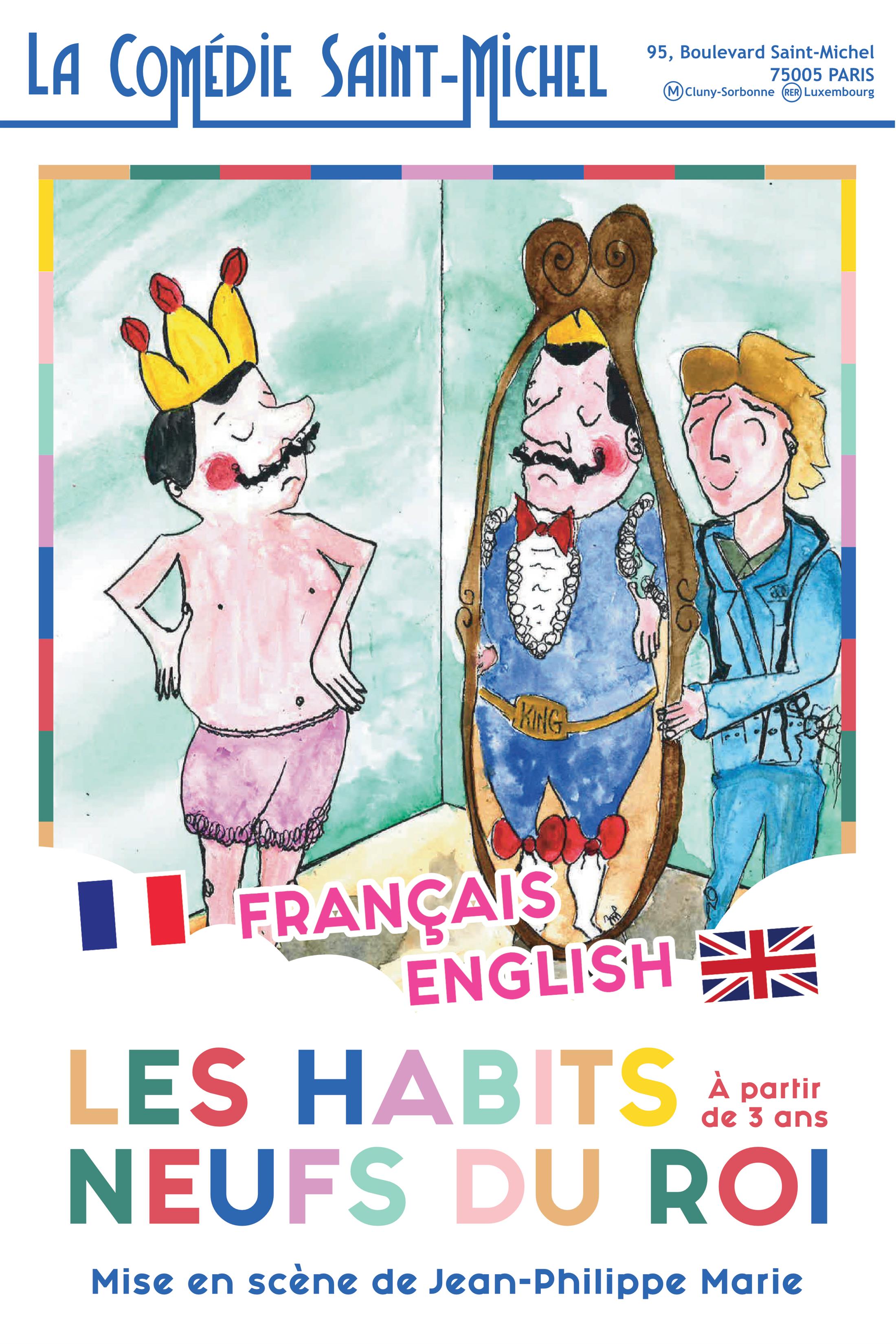 In this show adapted from the famous tale by H.C. Andersen, a king obsessed with appearances falls into the trap of merry charlatans who promise him an incredible suit, invisible to fools. Once upon a time, there was a king who lived only for his appearance. Every hour, a new suit, a new outfit! Thus, he spent most of the kingdom's money to stay fashionable and maintain his appearance. One day, two mischievous charlatans arrive in town. Discovering the king's irrational passion for all kinds of outfits, they offer him an extraordinary suit that, among other things, has the quality of being invisible to any person who is foolish or doing their job poorly. Such a suit would allow the king to identify his intelligent subjects, his foolish subjects, and the good workers! Handsomely paid, the scammers set to work... To check the final result, the king's trusted men, his ministers, and his advisors come one after another to see the invisible fabrics... But who will dare to admit that this suit doesn't exist? Parents who are interested in a bilingual show for children will find this story captivating and delightful, as it teaches valuable lessons about honesty and self-awareness in both languages !