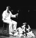 Jérôme Sauvion livre ici une belle adaptation du roman de Christiane Rochefort : le spectacle repose sur un monstrueux tas de chaussettes. Reconstituer une paire quand on doit faire face à une véritable montagne, c’est accomplir sa tâche et permettre à la famille de rester droite dans ses chaussures. Dans les mains du comédien, ce geste prend une ampleur toute significative et raconte l’histoire tout autant que les mots.