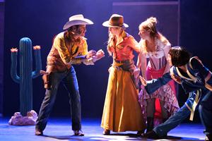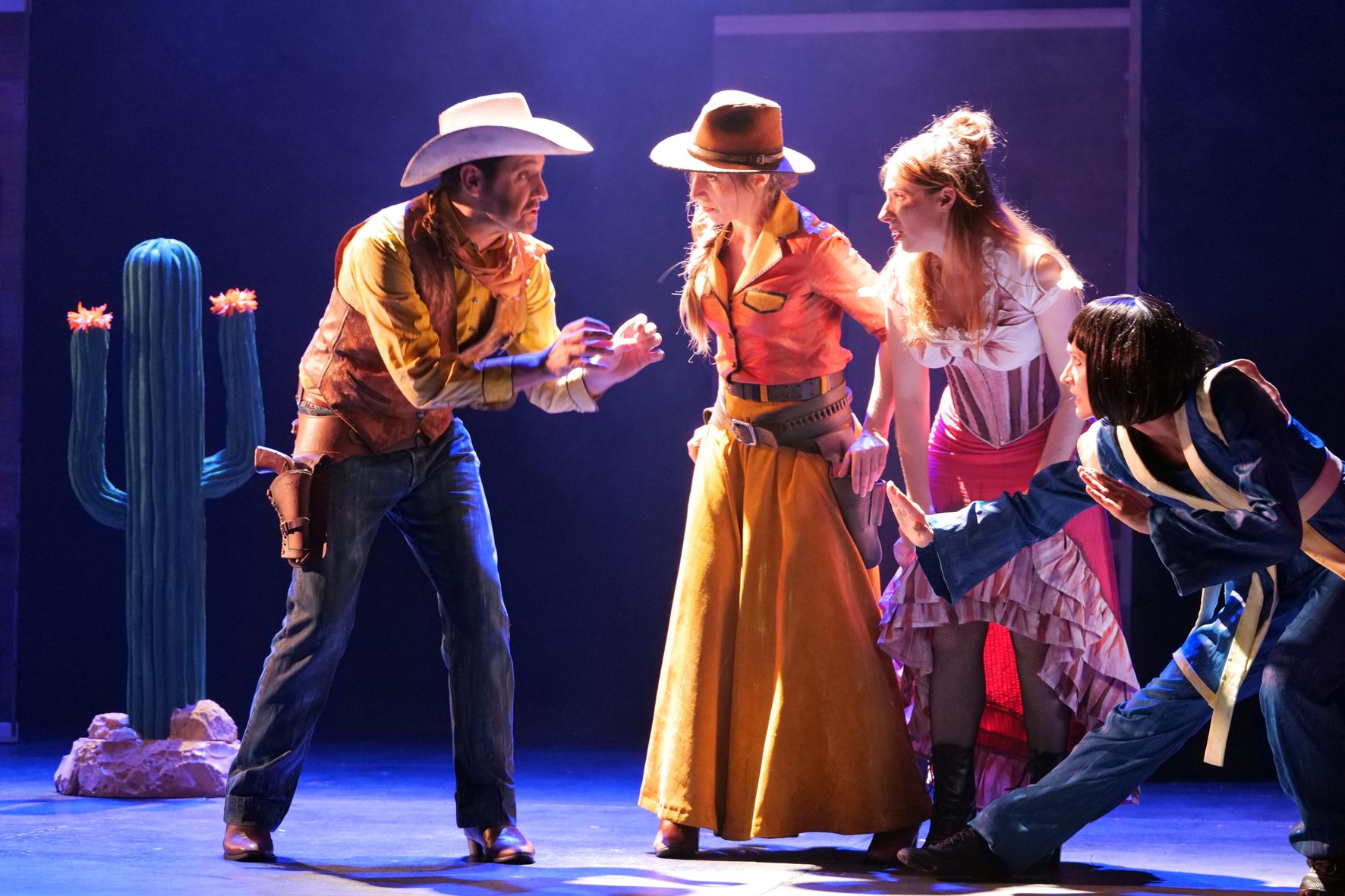 Un véritable western avec des cow-boys, des méchants, des revolvers, des bagarres… et surtout beaucoup d’humour.