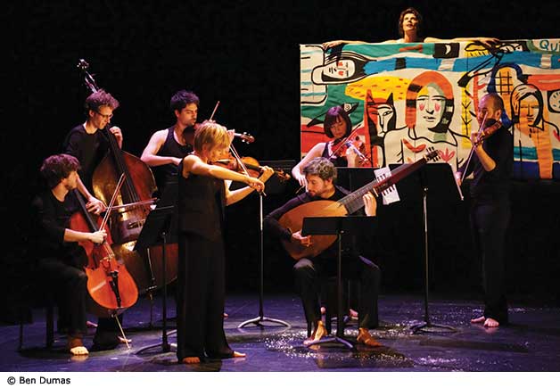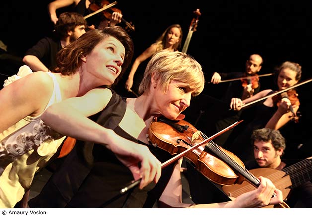 La partition de ces deux œuvres du répertoire classique interprétée par Le Concert Idéal et le violon solo tour à tour tendre et fougueux de Marianne Piketty, accompagne Irène Jacob, funambule sur son fil de mots, tendu entre deux antipodes, tantôt jeune fille cherchant un père dans une forêt d’Europe, tantôt garçon en quête d’échanges amoureux dans une cité argentine.