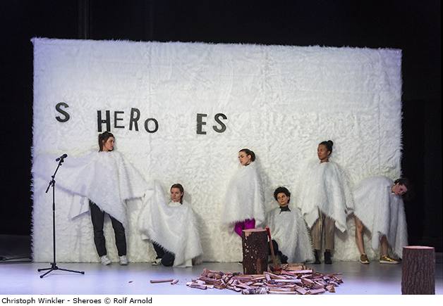 Changez une lettre ; changez le mot. Changez le mot ; changez le monde. Sheroes. Christof Winkler rajoute un " S " en ouverture du titre de sa pièce. Tout un modèle, furieusement masculin, de l'héroïsme, s'en trouve ébranlé. Certes il est lui-même un homme. Mais c'est bien l'invention d'un héroïsme au féminin actuel, que sept danseuses viennent explorer et déployer, dans un nouvel agencement.