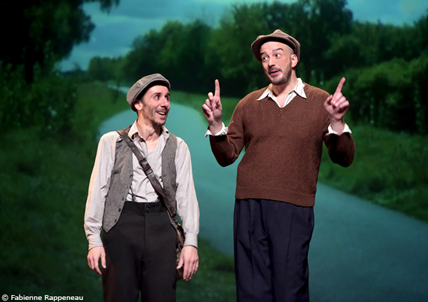 Bravo aux 2 comédiens Evidement ça fait penser à la grande vadrouille , avec le mème fond mais avec un autre sujet. Les comédiens sont excellents, les fond d'écran participent vraiment à créer l'ambiance. Le public est attentif..ému et rie . C'est une comédie qui ne ressemble pas à tout ce que l'on voit !