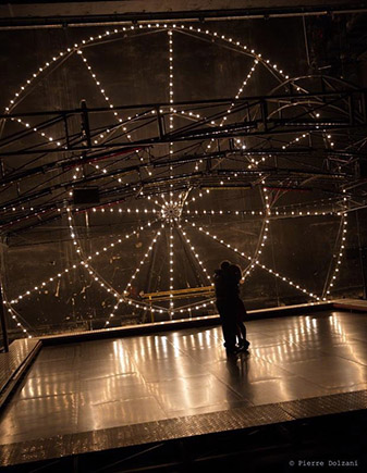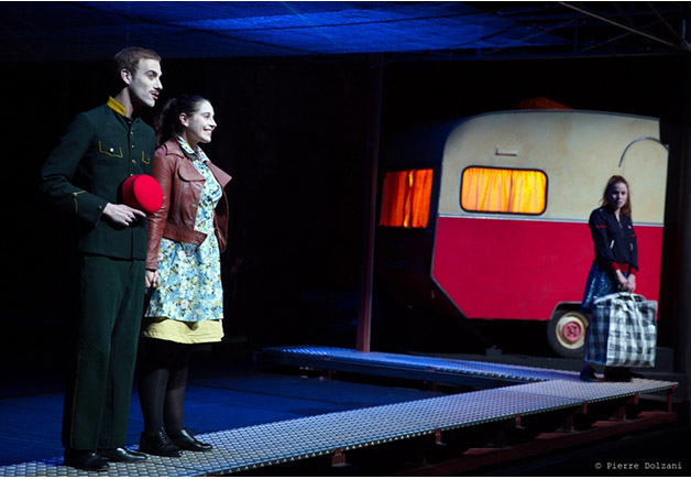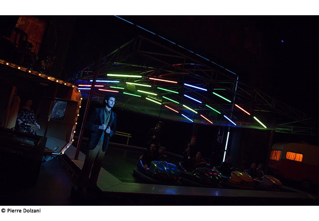 L’auteur hongrois Ferenc Molnár qualifiait lui-même cette pièce singulière créée en 1909 de « légende de banlieue en sept tableaux ». Dans cette fable sociale et onirique, le propos est parfois amer, les rapports entre les personnages violents, mais la troupe prend le contre-pied avec la douceur, l’énergie et la joie qui lui sont habituelles. Le décor de fête foraine – autos tamponneuses et grande roue –, la musique et la gouaille des douze acteurs sont la clef pour entrer dans ce monde fait d’ombres et de lumières, rude et féerique.
