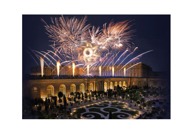 Pour donner du faste à ce domaine en construction ( pendant 30 ans !), Le Roi inventa des fêtes extraordinaires dans les jardins, et en 1664 les Plaisirs de l'Ile Enchantée rassemblèrent tous les talents artistiques autour du jeune souverain et de sa Cour, pour un événement artistique qui fit date et reste le symbole même des fêtes de Cour. La pyrotechnie y prit une place essentielle, qu'elle devait conserver à Versailles.