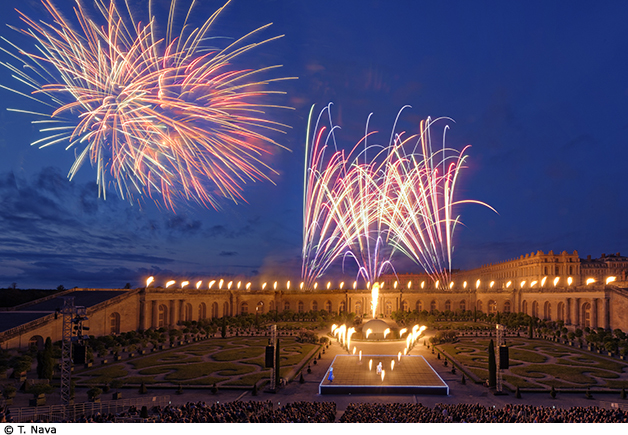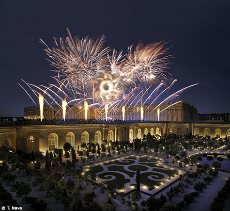 Louis XIV, Le Roi de Feu : spectacle pyrotechnique dans les Jardins de l'Orangerie du Château de Versailles.