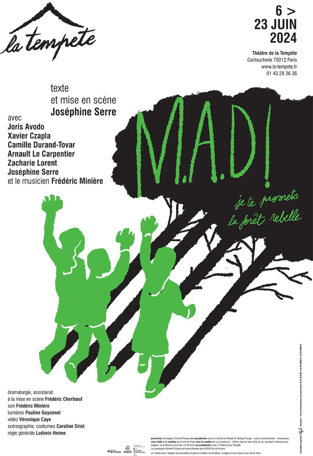 Dans la veine de Data Mossoul, Joséphine Serre reprend le chemin de la fable et des énigmes poétiques pour interroger nos capacités à nous révolter quand le système s’enraye et devient inhumain. Elle nous entraîne ainsi dans une ZAD théâtrale, une épopée haletante au parfum d’utopie pour dessiner les contours d’un monde à défendre. Quand la forêt rebelle se met en marche, il y a de quoi trembler… ou espérer !
