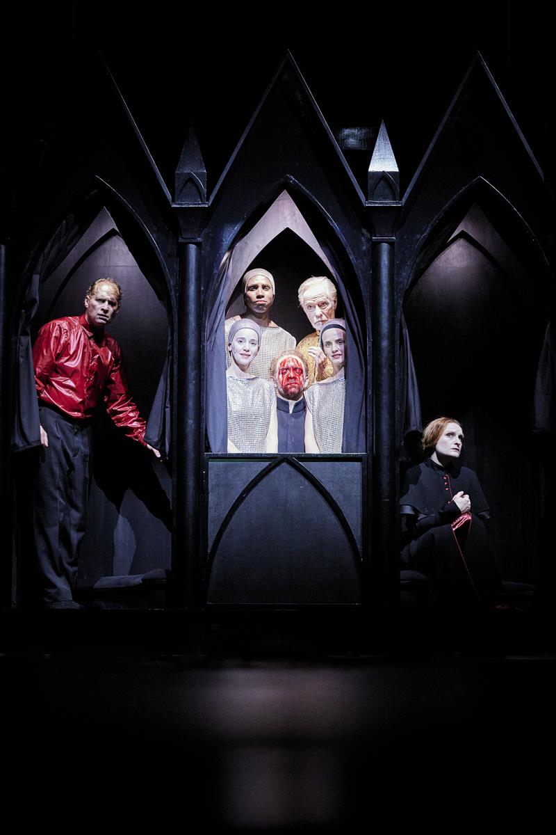 Macbeth n'est pas une pièce sur la mort mais une pièce sur la soif du pouvoir "à tout prix". Le décor est globalement beau (sauf peut-être le bâtiment en carton pate) mais le texte de Shakespeare si poétique n'est pas audible : des coupures, des inversions de scène (la recette des sorcières en conclusion?), des ajouts (Lady Macbeth enceinte!!!) Très surprenant. Dommage car Noam Morgenstern, Christian Gonon et Alain Lenglet seraient merveilleux sans cette mise en scène…