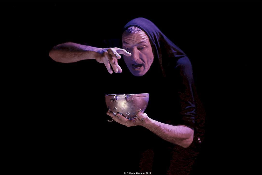 Grandiose! Comment cela quel décor ? Je vous parle de Théâtre, pas d'une super médiocre production à gros budget! Que nenni vous dis-je! Grandiose c'est au comédien que je fais ce compliment, à la mise en scène, aux ambiances sonores et à la musique on live, Que d'ingéniosité quand l'accessoire devient essentiel (ah la Royale passoire faisant casque soldatesque à la fois! (gros budget vous ai je dit! Nous sommes baignés des vapeurs excellemment maléfiques, de sortilèges croissants...Les trois sœurs du destin...Philippe Nicaud au Royaume de la Métamorphose ,est Roi, Reine, soldat, Ducan...Banco! les jeux sont faits , la roue du destin s'ébranle...Elles nous l'avaient prédit! La voix de Sieur Nicaud électrise, emporte. Hallucinant, impossible de ne pas s'en extraire...Nous voici donc damnés puisque témoins et complices. GRANDIOSE et ENSORCELANT! Quel claque théâtrale...J'ai encore toutes les images, tous les sons, toutes les noirceurs et le sang qui bouillonnent dans ma mémoire et la Guitare qui vous électrise! INCREDIBLE! AMAZING, au de la du réel!