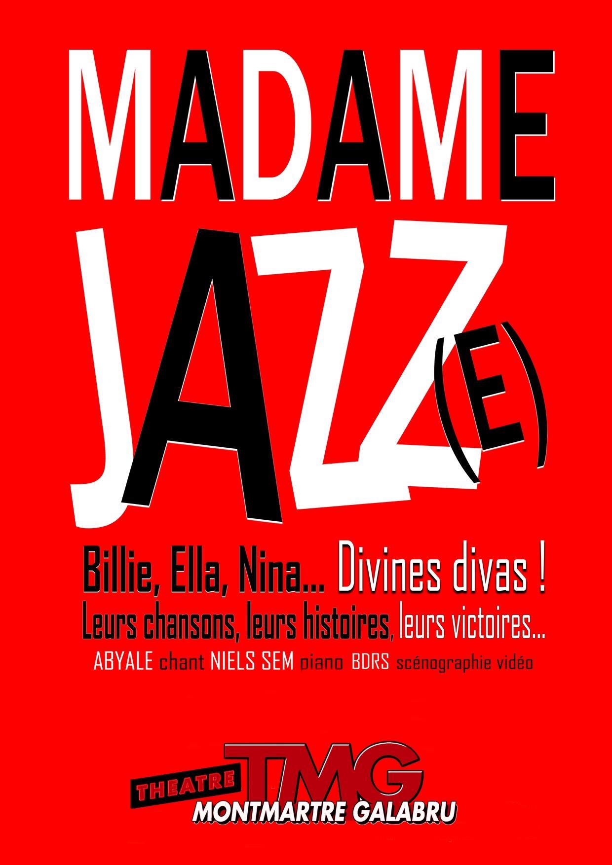 Madame Jazz(e) c'est aussi des anecdotes étonnantes, drôles ou émouvantes sur les vies de ces divas : leurs amours chaotiques, leur combat contre le racisme et le sexisme, leurs rébellions, leurs victoires! La scénographie vidéo nous rappelle les visages de ces femmes puissantes. Un spectacle qui donne une furieuse envie de chanter et de danser !