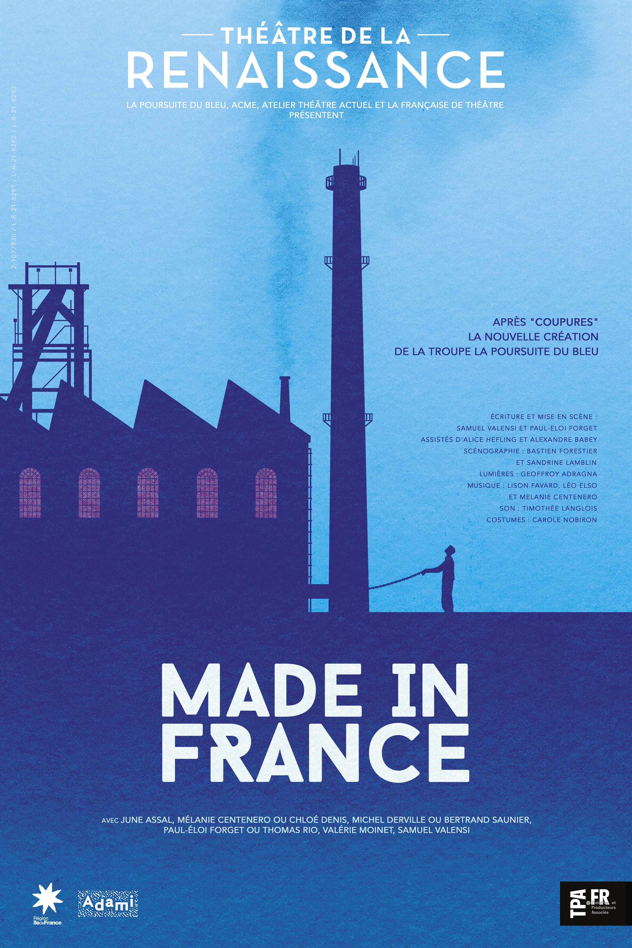 Made in France est un spectacle qui raconte le combat d’hommes et de femmes prêts à tout pour sauver l’industrie française... enfin... à tout, sauf à faire quelque chose.