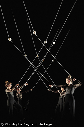 « Aujourd’hui m’inspirer de HIC avec 4 femmes au plateau est plus qu’une remontée dans le temps, c’est aussi un acte de création qui convoque magie et pratique jonglistique pointue dans leur brutalité d’exécution, sans trucage ni décor comme il y a vingt ans, mais avec des signes de notre contemporanéité. Visions nées de la cinétique, et une magie d’autant plus poétique qu’elle est dévoilée. D’autres objets comme les plaques de polystyrène, petites et grandes, qui n’existaient pas dans la pièce d’origine, sont également apparus. » Jérome Thomas