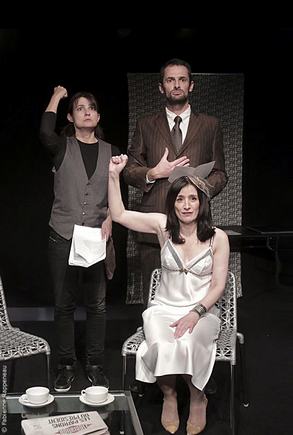 Bien sur on pourrait torturer le pauvre homme jusqu'à lui faire dire des choses amères et profondes sur les femmes, le mariage la politique... mais ce n'est pas du tout notre intention. Nous voulons rire et que le public rie avec nous. Nous voulons exprimer le ridicule de chaque personnage et de chaque quiproquo, mener chaque situation au bord du précipice, frôler la catastrophe, friser le drame, jouer avec l'équivoque.