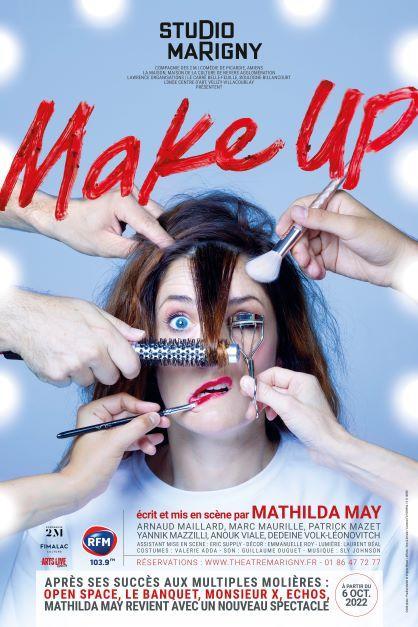 Après les immenses succès de Open space, Le banquet (Molière 2019 de la Révélation féminine pour Ariane Mourier, Molière 2019 de la mise en scène d'un spectacle de Théâtre public pour Mathilda May), Monsieur X (Molière 2020 du meilleur seul en scène) et Echos, Mathilda May présente son nouveau spectacle Make up.