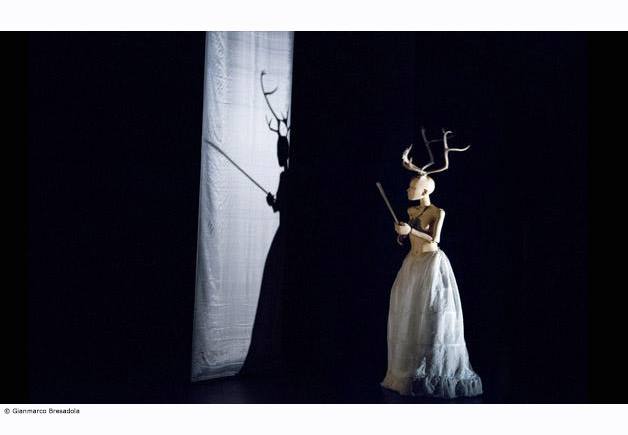 Dans une atmosphère crépusculaire, comme hors du temps, un être fabuleux, mi-femme mi-cerf, est bouleversé par d'étranges visions. Suivant sa voix intérieure et portant le fardeau de son don, Manto transgresse son univers mystique avec autant de crainte que de courage. Uta Gebert préfère se passer de récit et de paroles, pour nous emmener dans les zones obscures de la vie intérieure. Nous naviguons au confluent des sensations et des sentiments, là où les mots perdent leur puissance. La marionnette à taille humaine au pouvoir magnétique, la lumière, le son et les grandioses jeux vocaux en direct du chanteur contre-ténor Harald Maiers, donnent toute son intensité à l'évolution émotionnelle du personnage.