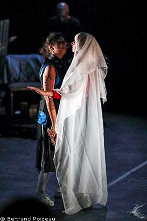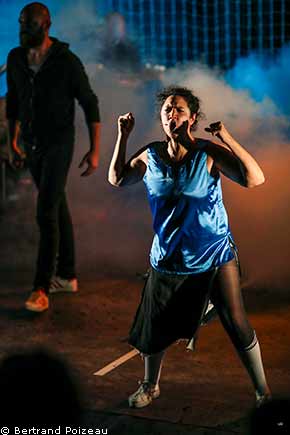 Cette enquête nous mènera dans un parking, transformée en temple païen par notre Cybèle. Point de rencontre entre la Terre, le Ciel et l’Enfer, ici, nos deux figures féminines s’interrogeront, aidées par les chorégraphies et la musique, sur cette force qui pousse Maradona à jouer sa vie sur un terrain et que García Lorca nomme le « Duende ». L’humour sera le système rénal de ce nouveau monde féminin et ironique (descendant du monde « historique » détruit par les violences qu’il a engendré). Il filtrera et épurera le propos car les passions ne sont pas stupides et lui seul les empêche de le devenir. Le bleu Napolitain laissera place au rouge vibrant. Cette mar a dona (mer à femme) dévoilera alors l’abîme caché sous les frisettes de l’ange.